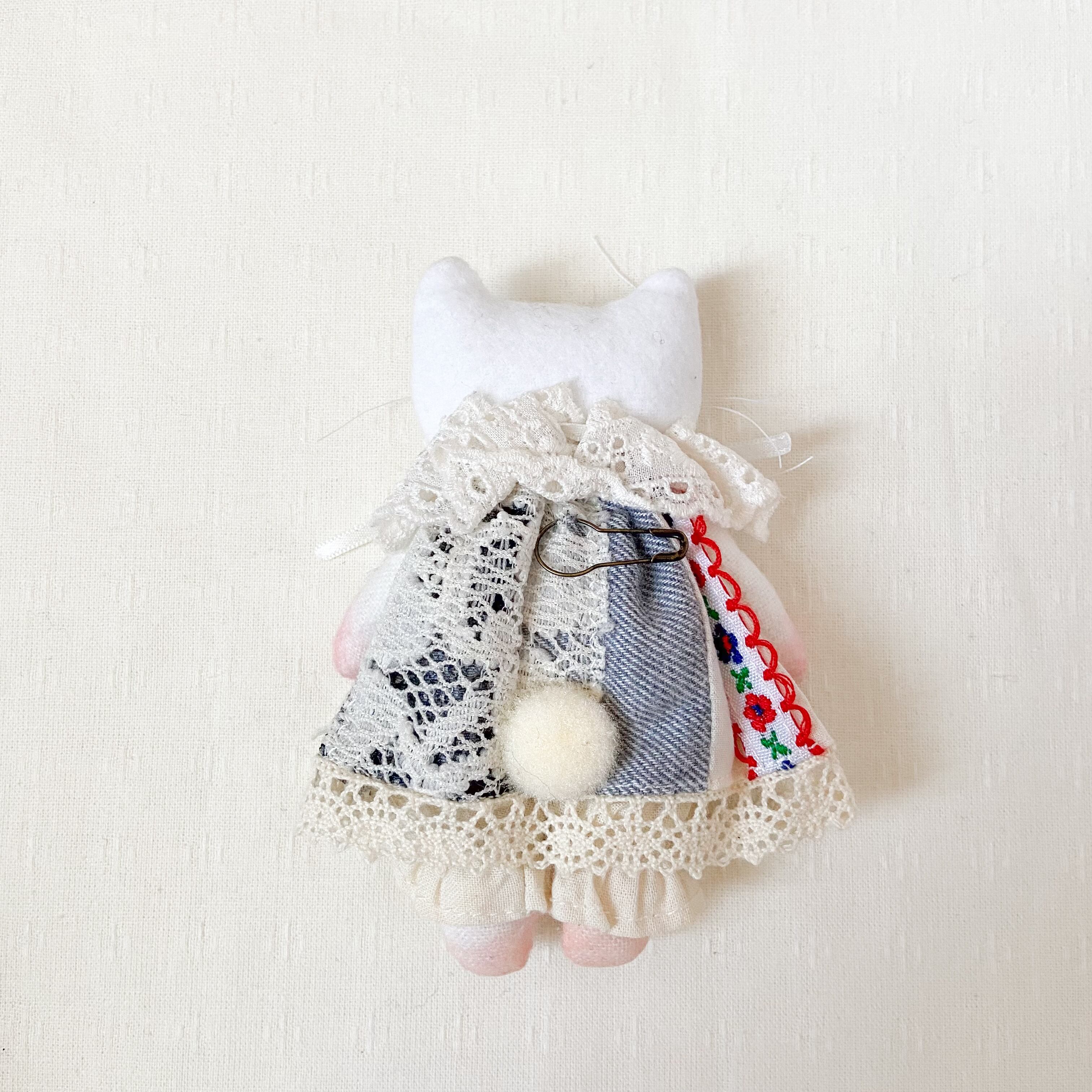目は刺繍、鼻は羊毛刺繍